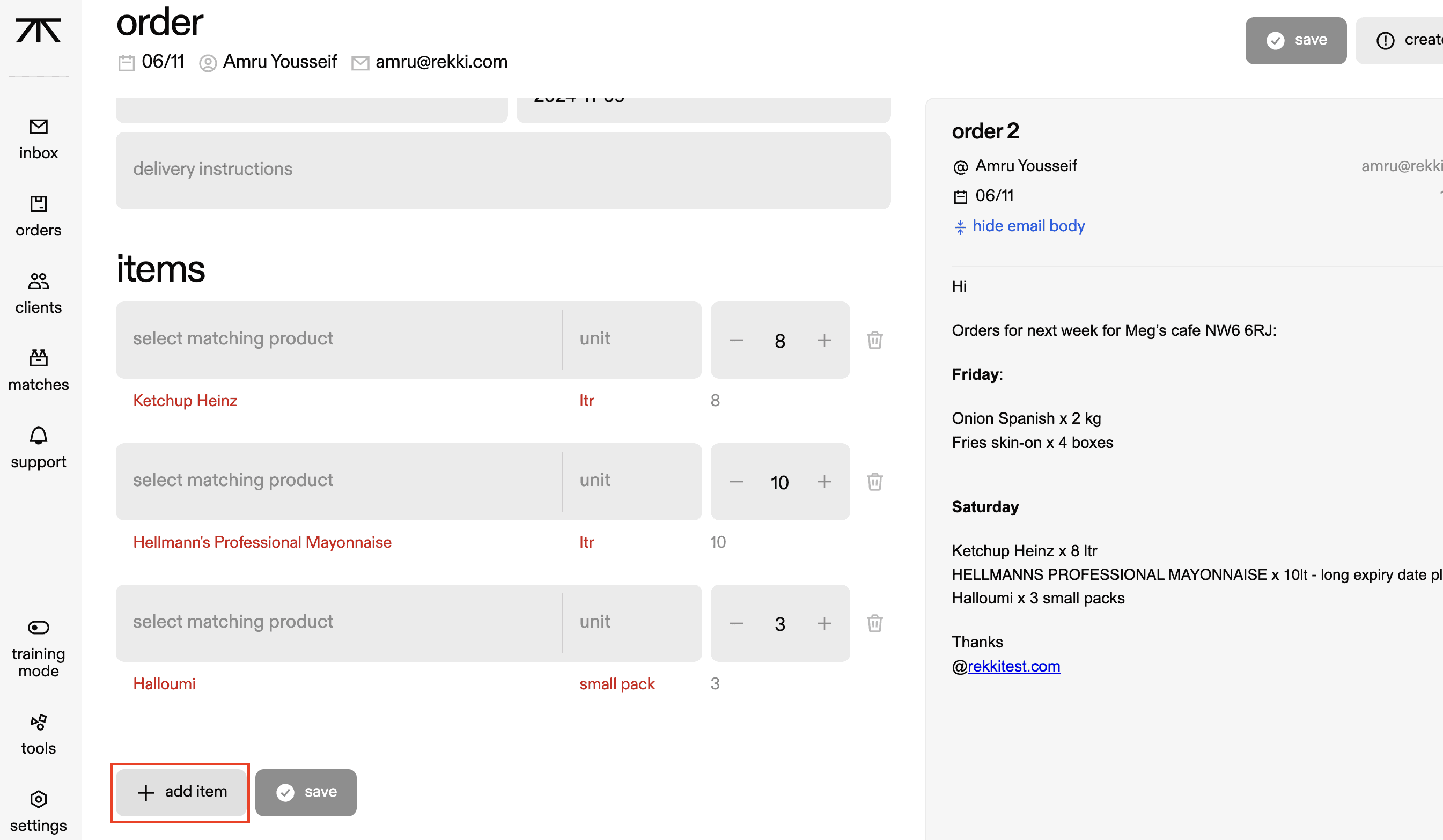 Press ‘add item’ at the bottom of the order when processing